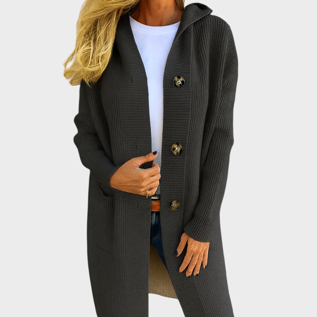 Este casaco comprido de malha é a peça-chave para looks práticos e sofisticados. Com botões frontais de destaque, bolsos funcionais e corte alongado, oferece elegância sem esforço e conforto durante todo o dia.