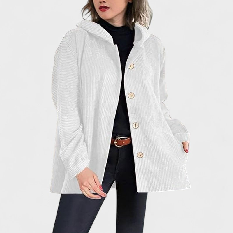 Este casaco combina conforto e estilo num design descontraído mas cheio de elegância. O corte ligeiramente amplo garante liberdade de movimento, enquanto os botões frontais e o capuz acrescentam praticidade ao look.