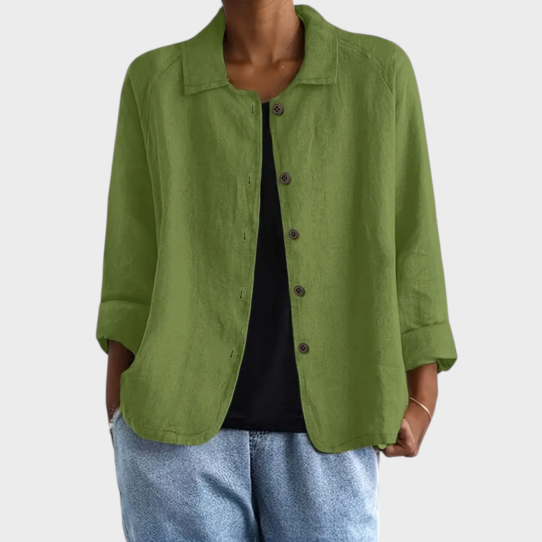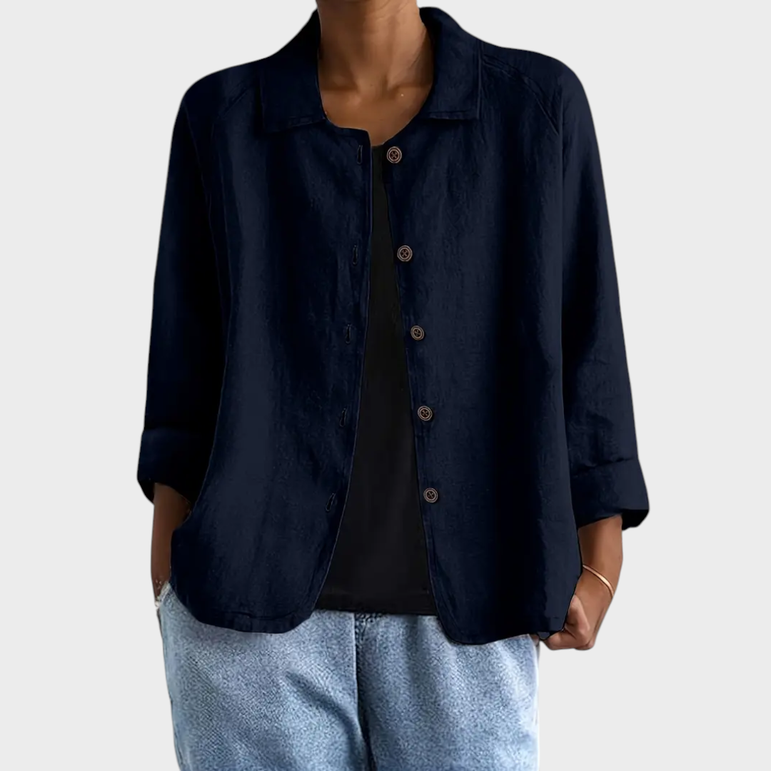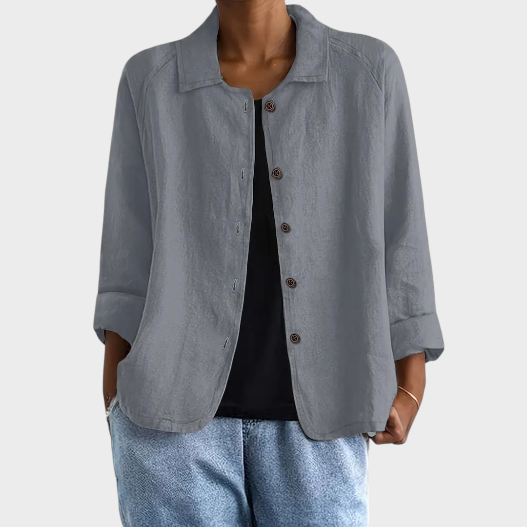 Um casaco leve e versátil, perfeito para complementar qualquer look. O corte descontraído aliado aos botões frontais confere um toque moderno e minimalista, ideal para quem valoriza peças práticas sem perder a sofisticação.
