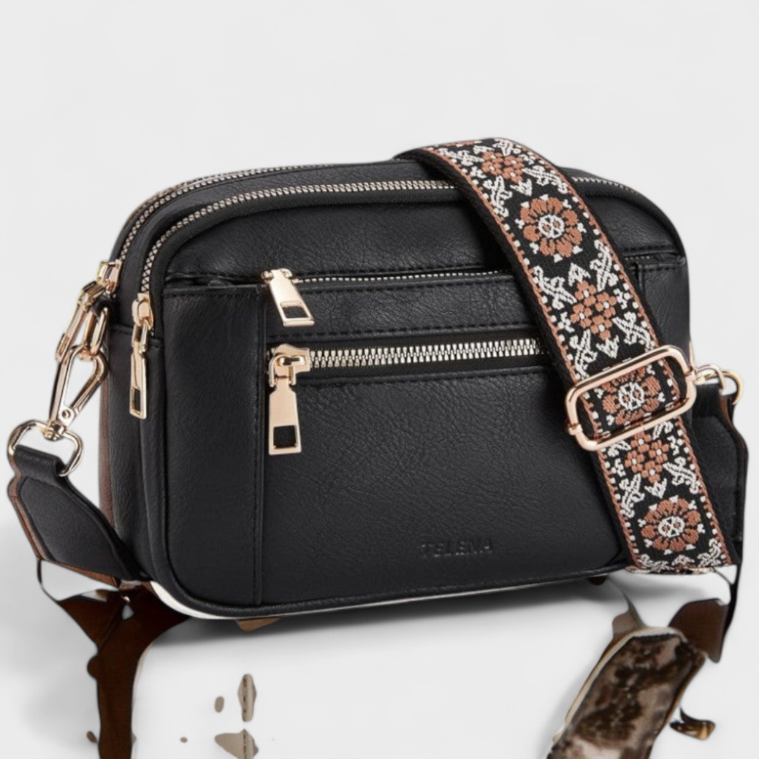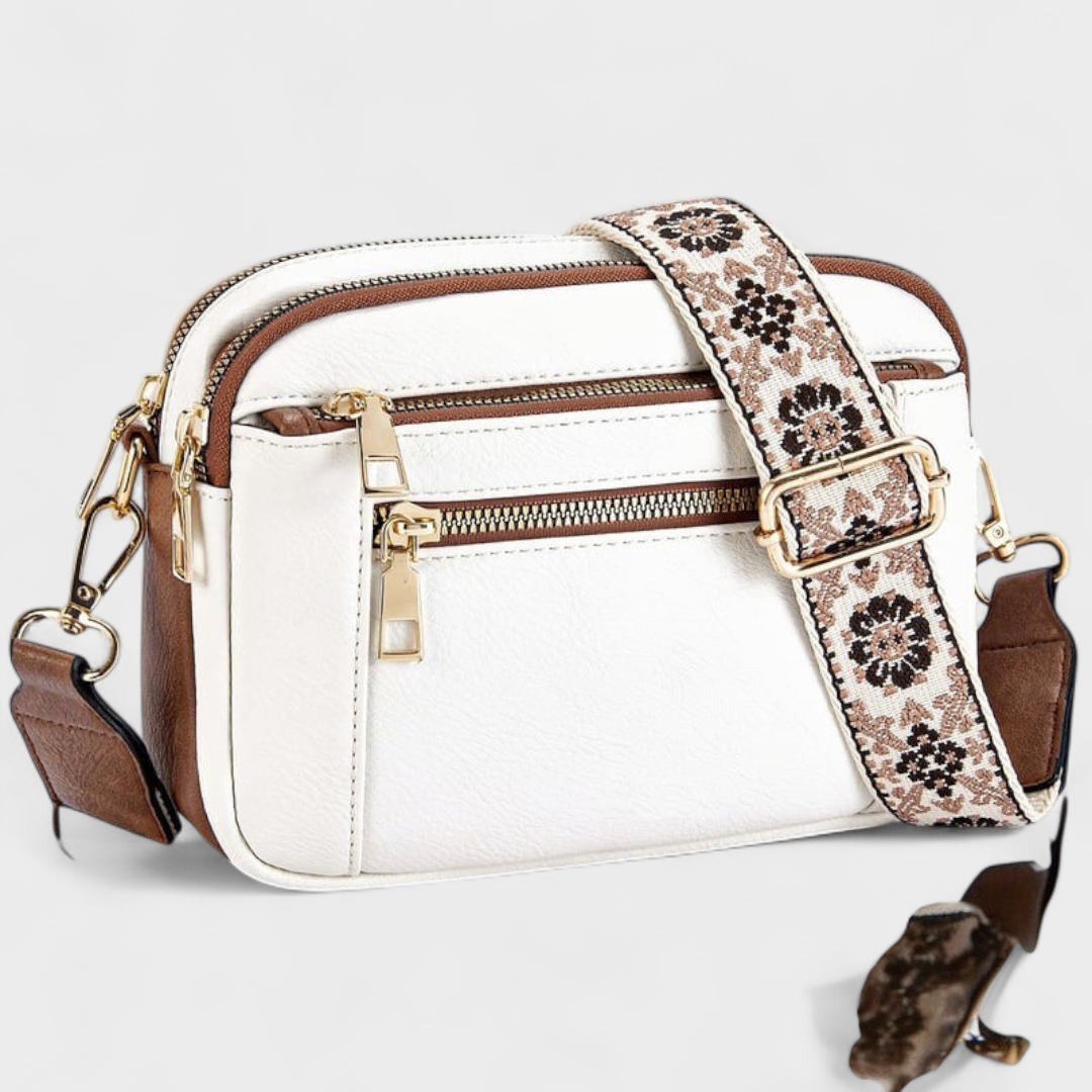 Uma mala prática e elegante, perfeita para acompanhar a sua rotina. O design compacto oferece organização com múltiplos fechos, enquanto a alça ajustável com padrão bordado dá um charme especial e diferenciador. Ideal para quem procura praticidade sem perder a sofisticação.