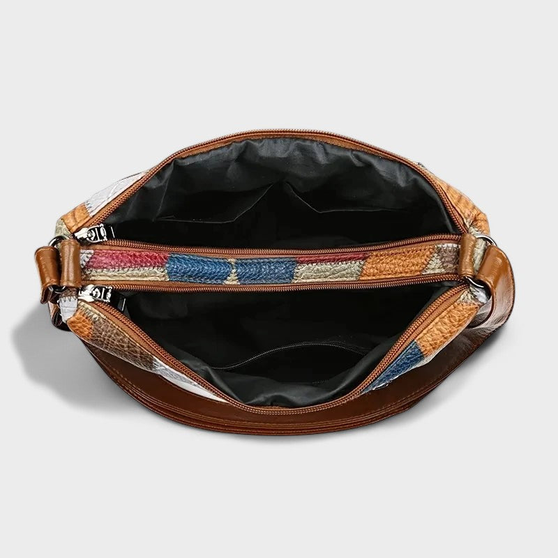 Uma mala que combina elegância e originalidade em cada detalhe. O seu design artesanal e o padrão cuidadosamente trabalhado tornam-na uma peça única, perfeita para quem gosta de se destacar com sofisticação.