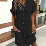 Design Clássico: Vestido de camisa com botões, corte descontraído e design simples, ideal para eventos casuais e semi-formais.