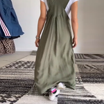 Descobre o charme descontraído deste vestido com alças ajustáveis, perfeito para um visual casual e confortável. Ideal para usar por cima de uma t-shirt para um estilo urbano e moderno. Uma peça versátil e fácil de combinar, essencial para uma elegância diária sem esforço.
