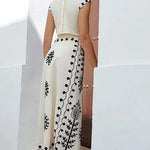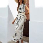 Apresentamos o conjunto Alice, composto por um top e uma saia comprida que proporcionam uma sensação de beleza e frescura, com um toque de sofisticação para qualquer ocasião. Este design versátil e feminino é a opção perfeita tanto para o verão como para momentos descontraídos.