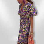 Faça uma afirmação de estilo com o vestido Amalia Vibrante, concebido para quem gosta de se destacar da multidão. Com as suas cores vibrantes, mangas bufantes estruturadas e cintura franzida lisonjeira, é perfeito para qualquer ocasião especial. Seja o centro das atenções e irradie confiança a cada passo.