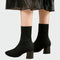 Botins **de tecido** femininos com salto em cor bege, desenhados para combinar elegância e conforto. O **tecido tricotado elástico** abraça perfeitamente o pé, enquanto o **salto quadrado médio** proporciona estabilidade e estilo. Ideais para looks de dia inteiro com calças, saias ou vestidos.