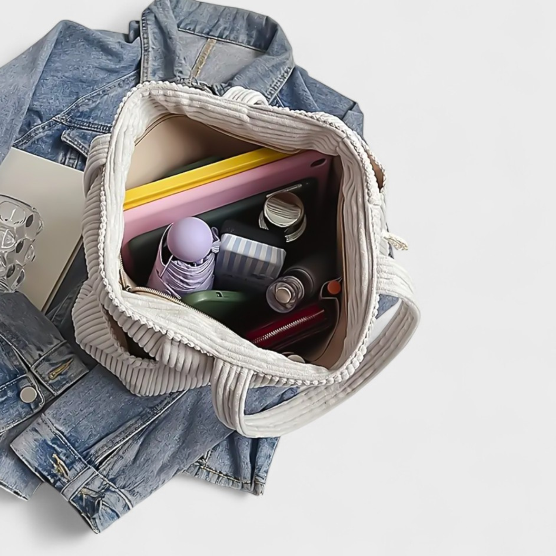 • Design com textura: O efeito canelado e o detalhe em corda tornam-na única e cheia de personalidade.