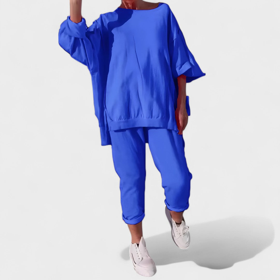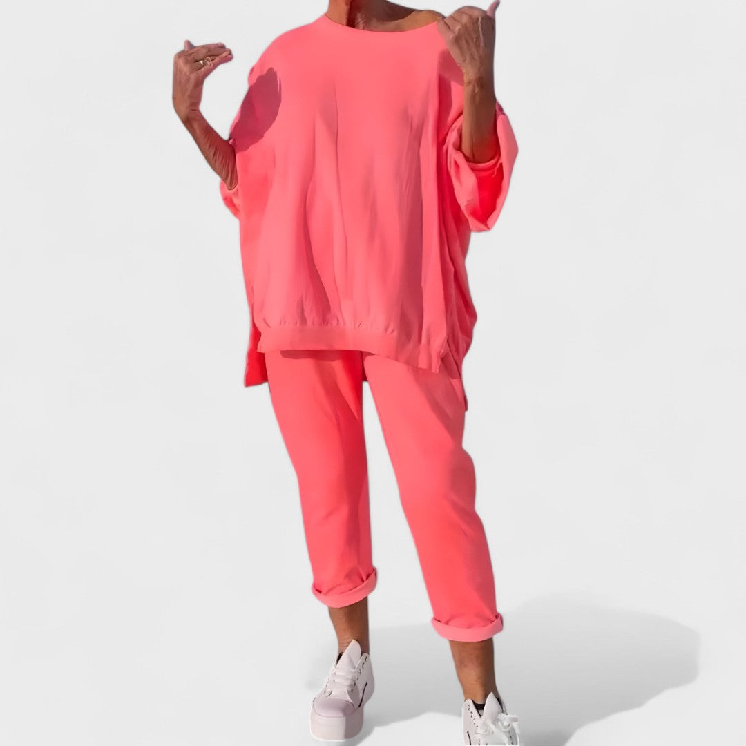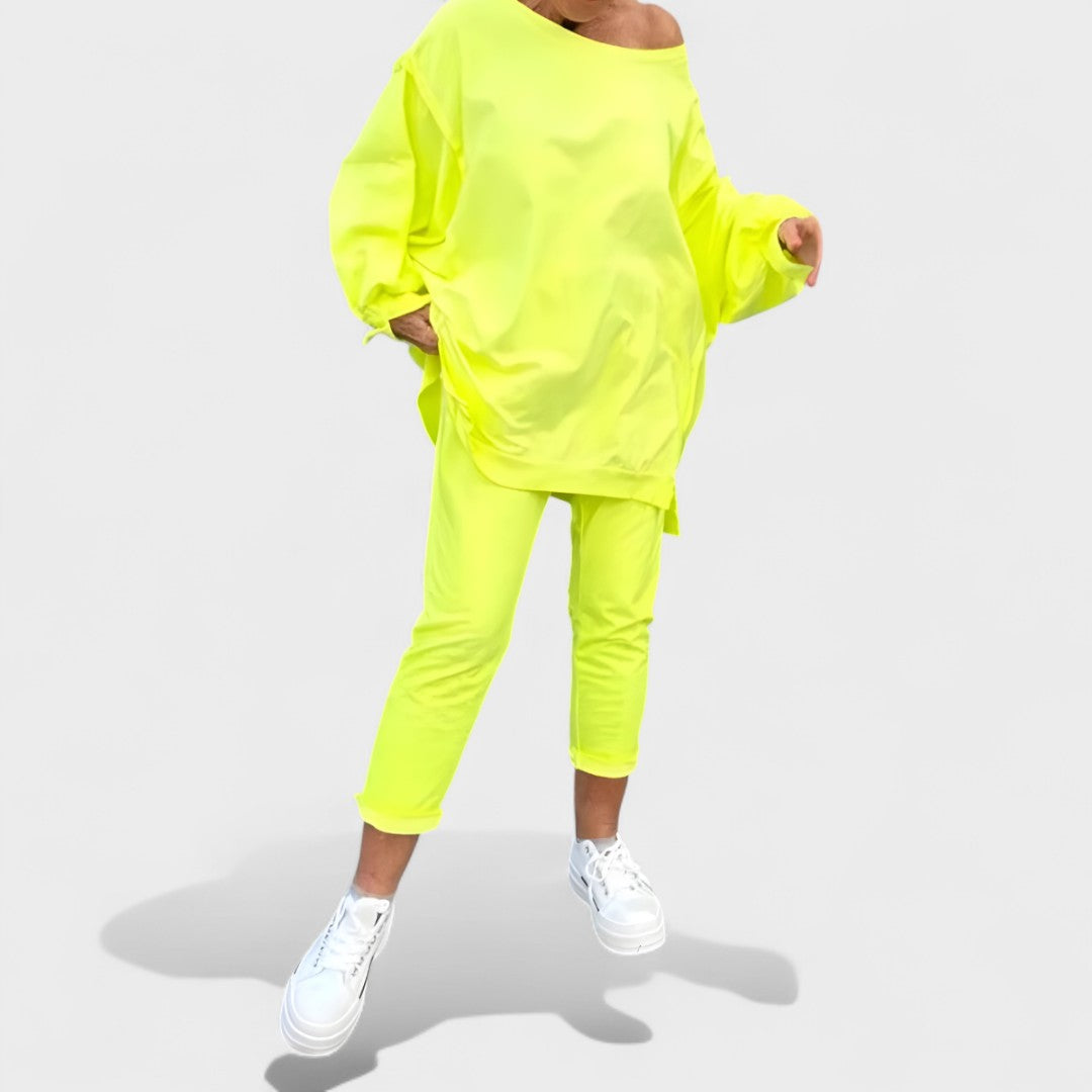 Este conjunto foi feito para quem vive com energia e adora sentir-se confortável sem abdicar do estilo. Com um corte largo e moderno, é ideal para o dia a dia, viagens ou momentos de lazer onde o conforto é prioridade, mas o visual continua em destaque.